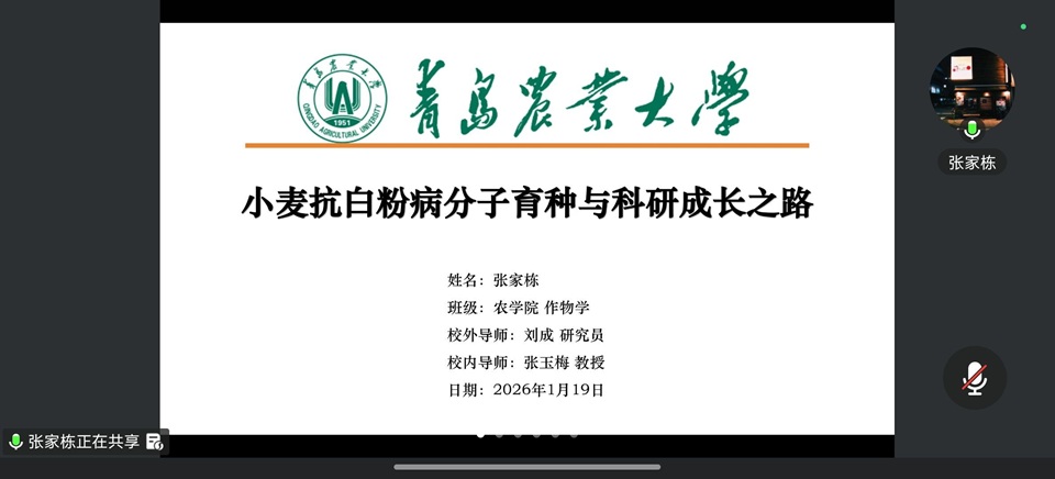 为加强研究生与本科生之间的深入交流,提升大学生的科学素养与创新能力,青岛农业大学农学院近日在线举办“冬藏蓄能·谋农兴”本硕博联动学术沙龙。此次活动共分两场,邀请了优秀研究生和本科生代表进行分享,2023级、2024级、2025级本科生参加,活动由学院学生发展中心创新创业部孔汝欣主持。